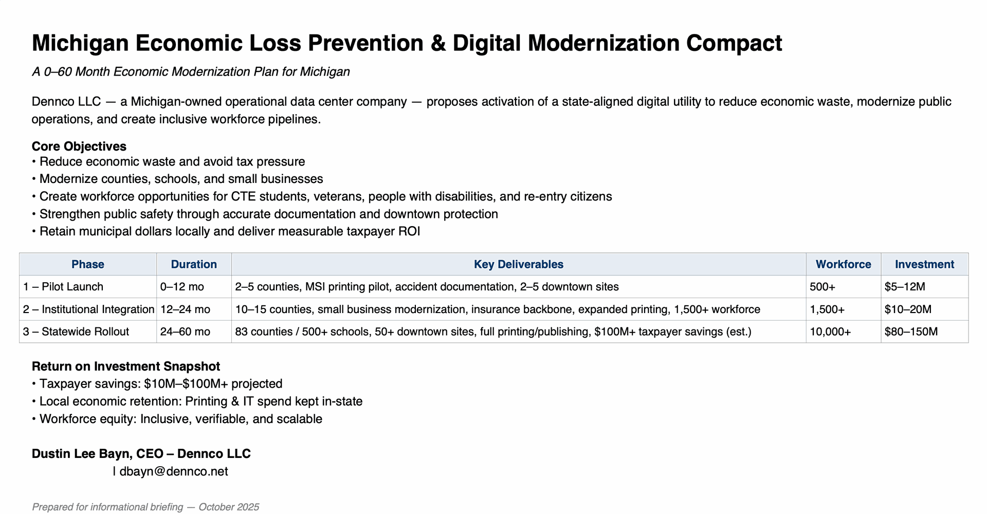Saginaw, Mich. — November 17, 2025 — Dennco Holding Company, LLC has submitted a partnership concept to the State of Michigan that could reduce long-term technology spending by shifting select systems away from high-cost Microsoft hosting and licensing arrangements and into a Michigan-based infrastructure model.